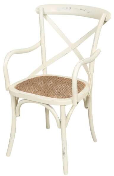 Vintage stílusú karfás szék: Nosztalgikus elegancia otthonába ? Ez a gyönyörű, kézzel készített vintage szék tökéletes választás, ha szereti a klasszikus stílust és a minőségi bútorokat. A kényelmes bécsi szalma ülőfelület és a karfák maximális kényelmet biztosítanak. A keresztezett háttámla egyedi megjelenést kölcsönöz. Jellemzők:Anyag: Tömör kőrisfa Stílus: Vintage Méret: 50 x 43 x 89 cm Ülőfelület: Kézzel készített bécsi szalma Kényelmes karfákEgyedi keresztezett háttámlaA szék könnyen tisztítható és karbantartható, így hosszú éveken át örömét lelheti benne. A tömör kőrisfa biztosítja a szék tartósságát és stabilitását. Hozza el a vintage hangulatot otthonába ezzel a gyönyörű székkel!