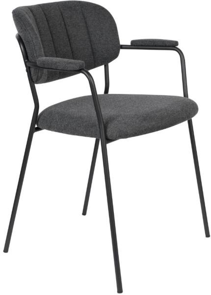 A Jolien étkezőszék minimalista stílusával hívja fel magára a figyelmet. A szürke szövetkárpitozású ülés és háttámla a fekete színű fémlakkozott talppal együtt ideális kényelmet és komfortérzetet biztosít nem csak az irodákban. A kartámaszok szintén maximális kényelmet biztosítanak.