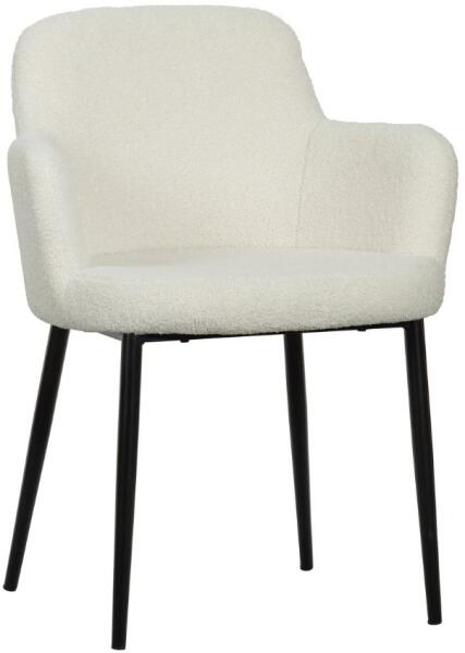 A Domila étkezőszék stílust és kényelmet hoz étkezőjébe. Kárpitozása puha plüss anyagból áll, magasabb bolyhosodással, amelyet első érintésre imádni fog. A kárpit fehér színét ízlésesen egészíti ki a fekete színű talp, amely tömör lakkozott fémből készült. A szék magas karfával és kényelmes háttámlával rendelkezik, így maximális kényelemben élvezheti az étkezést.