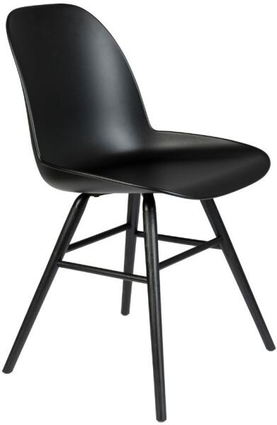 ZUIVER ALBERT KUIP ét kezőszék teljesen fekete színben. A propilénből készült ülés kiváló minőségű kőrisfából készült, alumíniumkerettel ellátott masszív talapzatra van rögzítve. Ezáltal az Albert Kuip teherbírása 140 kg-ig terjed.