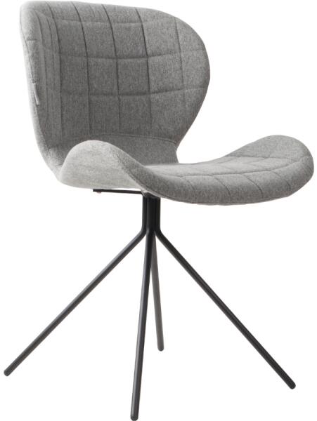 Elegáns és dizájnos kárpitozott étkezőszék ZUIVER OMG. A kiváló minőségű szövetből készült, világosszürke színű ülőfelület alapja rétegelt lemezből készült, vékony habréteggel borítva, amelynek köszönhetően elképesztő kényelmet élvezhet, anélkül, hogy félnie kellene az eséstől, amit az elegáns fekete színű, masszív acél alap garantál.